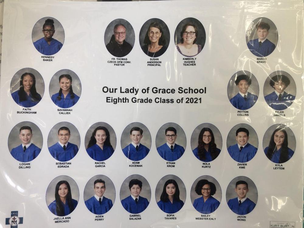 It is my hope that as you head off to high school that you will be able to reflect back on Our Lady of Grace and all that you have experienced here. I hope that you are able to bring our core values of unity, truth and love with you wherever you go. I challenge you to go out into your new high school communities and bring the kindness, encouragement, patience and resilience that you learned as students at our school to all of the people that you meet going forward. I am so proud of all of you and everything that you have accomplished here, and I just know that you will do great things as you go out into the world.