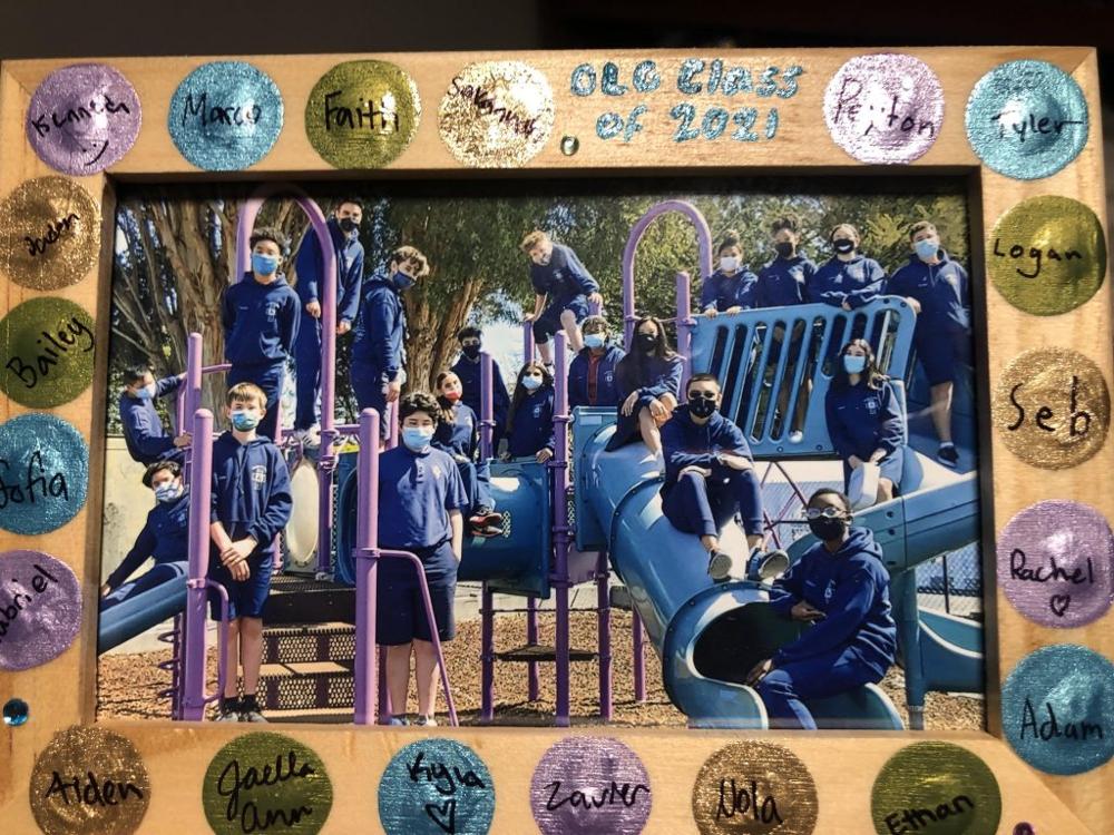 The class of 2021 were finally able to come together during the spring of 2021 for in-person classes. While they spent so much time being virtual friends as the senior class of OLG, they were none the less, a class complete. They gathered their submissions for their time capsule during the months of May and June. Thanks to their homeroom teacher Mrs. Hughes who got their treasures into this box. June 2025? Graduation Day from HIGH SCHOOL.