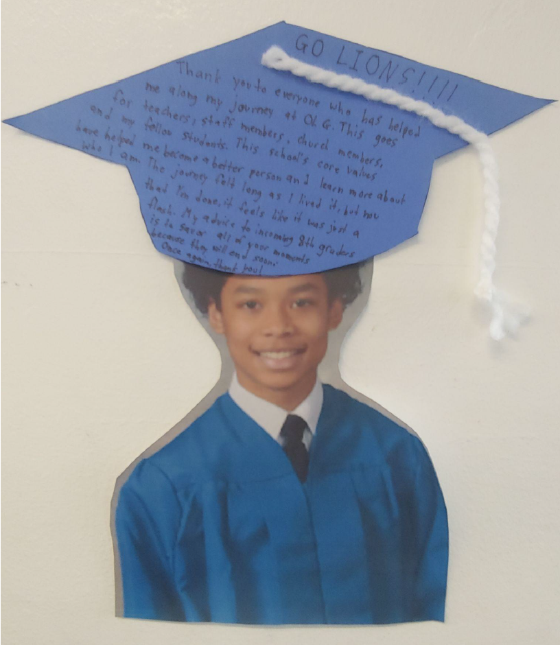 Now I am graduating eighth grade. Many would be happy that they’re finally leaving OLG, but that is not the case at all. I was sad to see all my classmates and teachers for the last time. The classmates that I spent almost my entire life with, and the teachers that taught me. I am going to a much bigger school now. I will make many new friends. However, these friends at OLG were like no other. I will miss them with all my heart.
